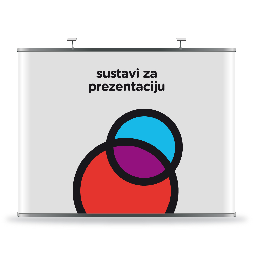 Samostojeći reklamni zid jednostavne montaže. Grafike se vrlo jednostavno postavljaju pomoću magnetnih traka. Uz pop-up dolazi i torba s kotačićima za jednostavnije pomicanje i transport. Konstrukciju je moguće nadograditi i rasvjetnim tijelima. U osnovnu cijenu nije uključen ispis grafike.
